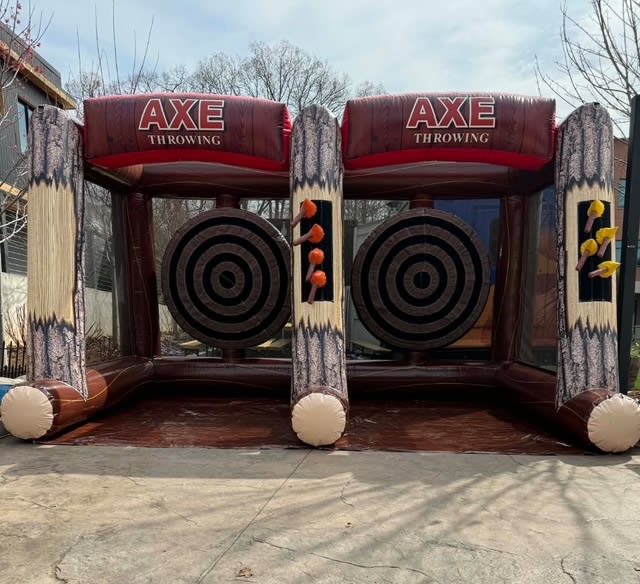 Axe Throwing Dual Lane in Easley, Greenville, Piedmont, Pickens, Six Mile, Clemson, Aderson and More brings high-energy fun to parties, corporate events, and festivals. This inflatable dual-lane setup is safe, eye-catching, and built for crowd engagement. Perfect for adults and children, it delivers competitive action and memorable moments.