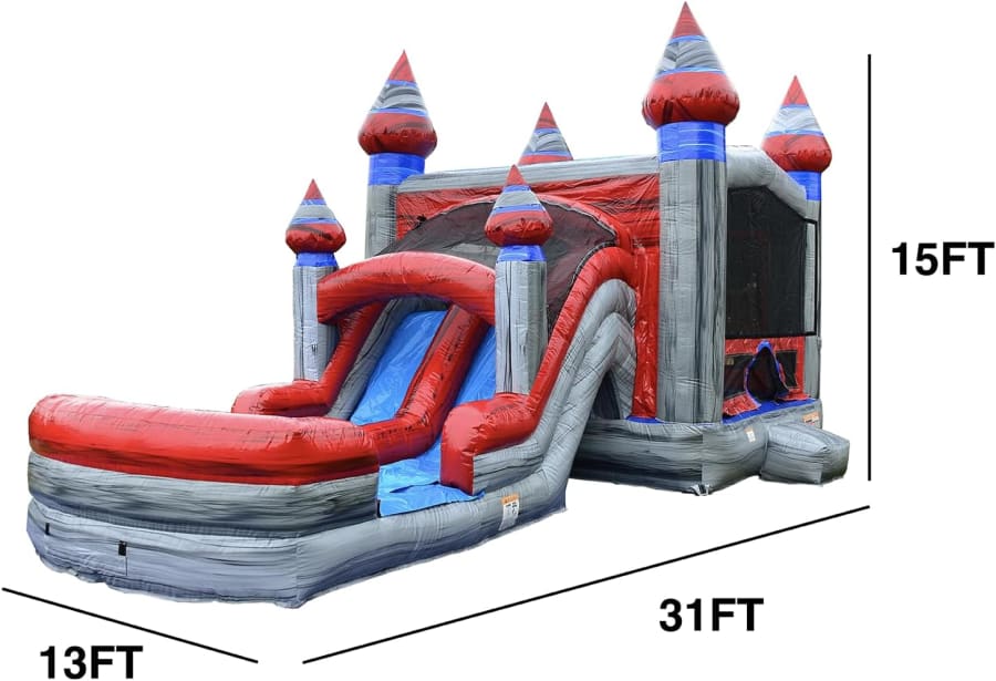 What sets our Combo Bounce House apart is its versatility. Not only does it feature a spacious bounce area for energetic jumping, but it also boasts a thrilling slide that adds an extra element of excitement. Kids can climb up and slide down, experiencing the thrill of a water slide or a dry slide, depending on their preference. ๐ŸŒŠ๐ŸŽข