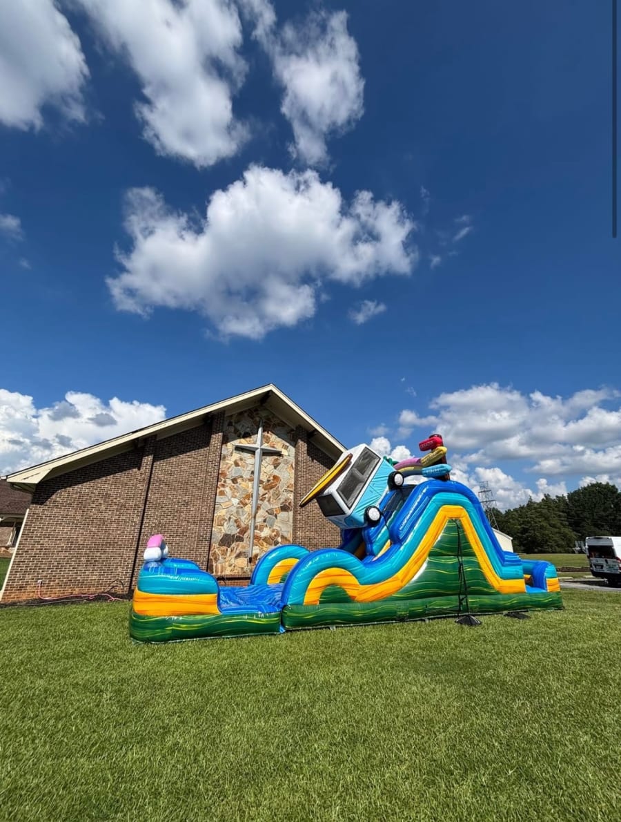 We proudly offer the Beach Camper Dual Lane Slide in Easley, Greenville, Piedmont, Anderson, Six Mile, and Clemson. Our commitment to customer satisfaction means you can expect timely delivery and professional setup, allowing you to focus on enjoying your event. Bring the beach to your backyard and create lasting memories with this thrilling attraction.